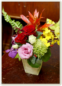 多色使いで、どことなくエキゾチックな雰囲気。人気のアレンジメントです。