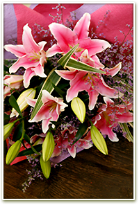 オリエンタルリリーを使ったゴージャスな花束です。ご年配の方に人気があります。